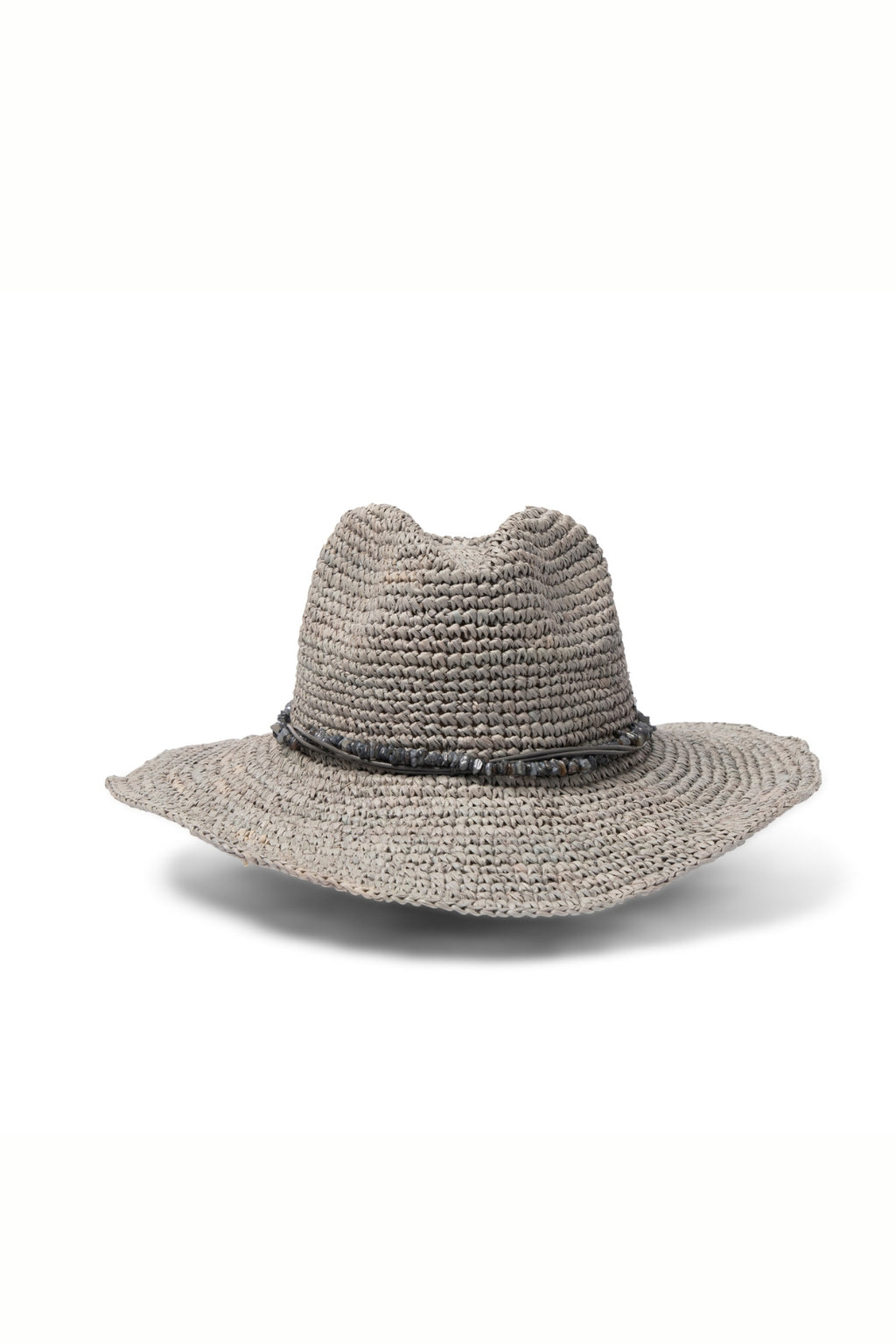 Dallas - Raffia Cowboy Fedora - Denim Bead Trim