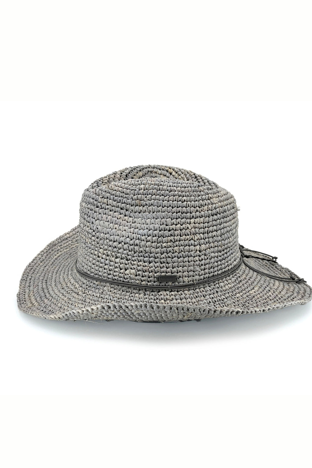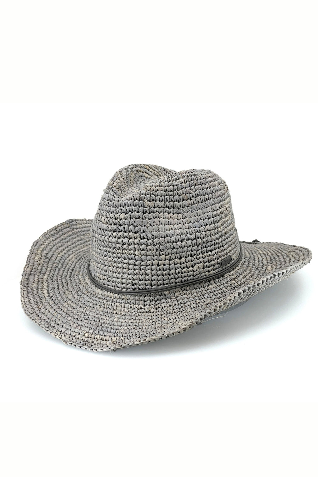 Dallas - Raffia Cowboy Fedora - Denim Leather Trim